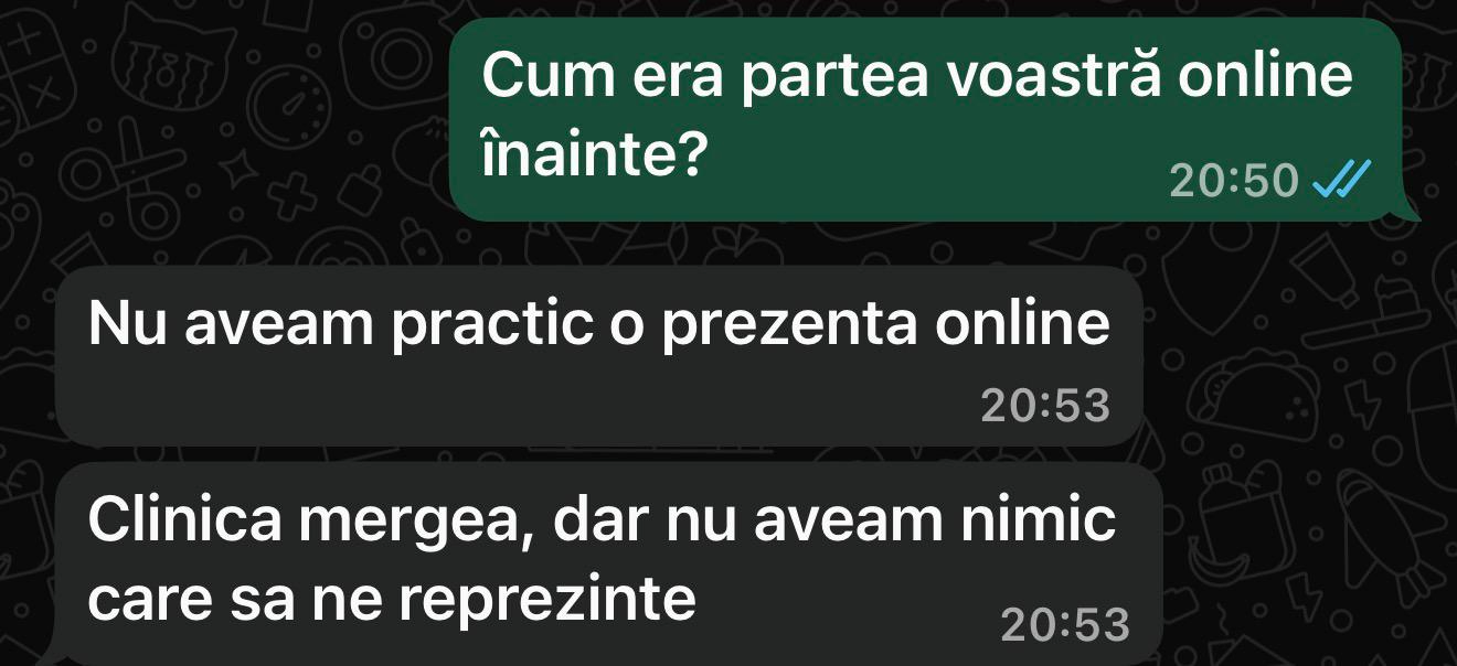 Înainte: "Nu aveam practic o prezență online. Clinica mergea din inerție."